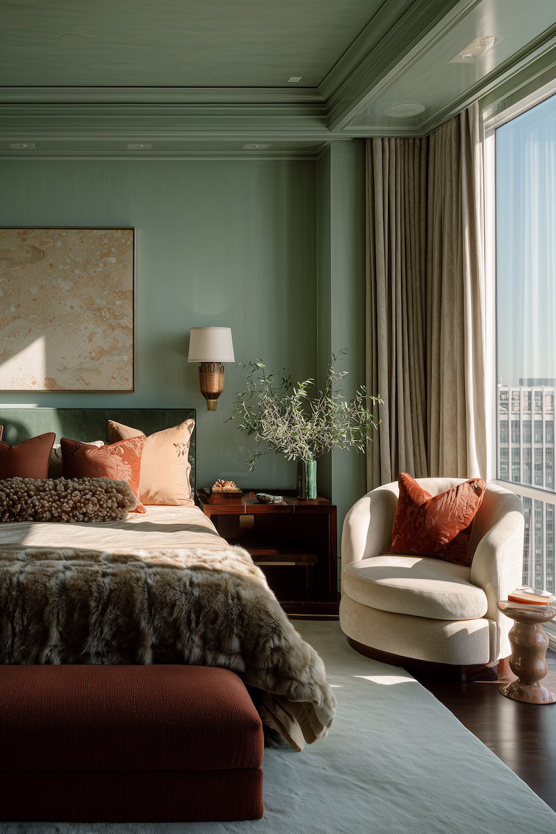 luxurious-green-and-burgundy-bedroom